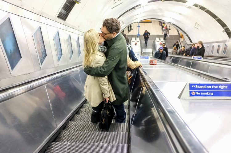 Perhaps it was the contrast between the couple’s intimate embrace and the indifferent rush of the commuters around them, or the setting itself; a typically busy, utilitarian space like the Bond Street Tube station.