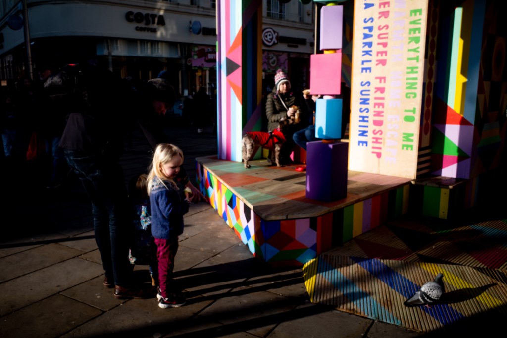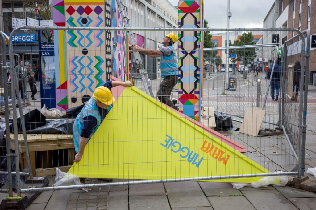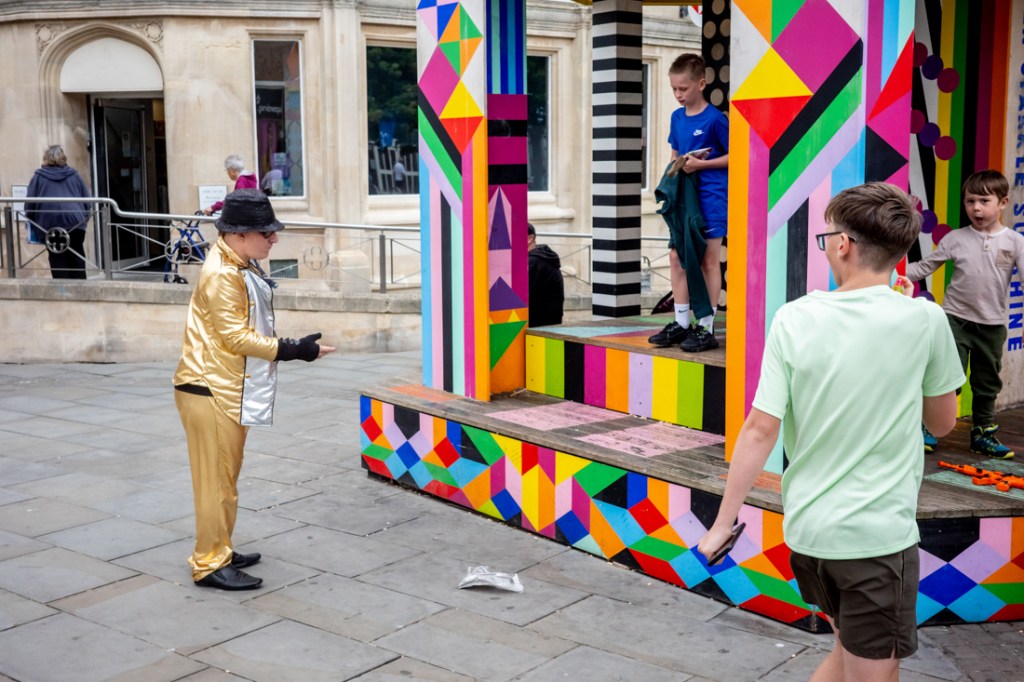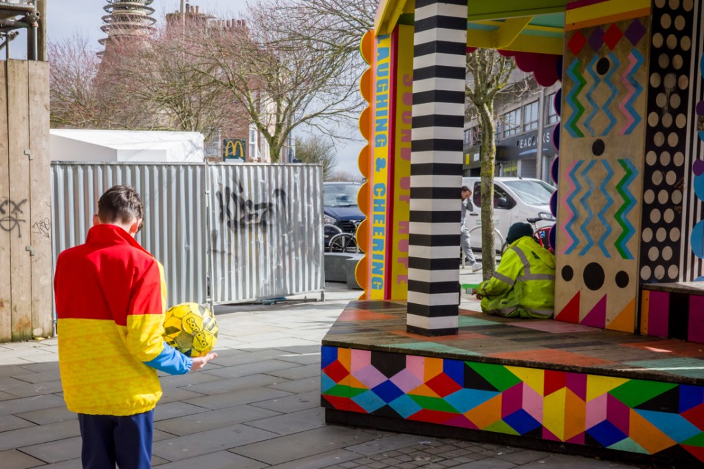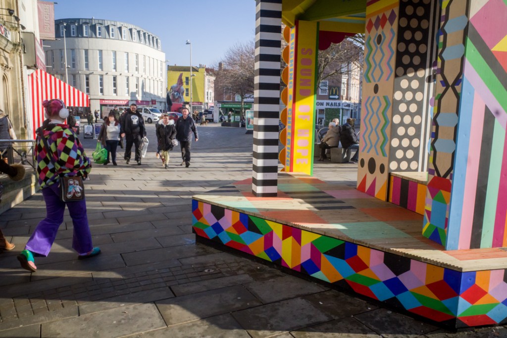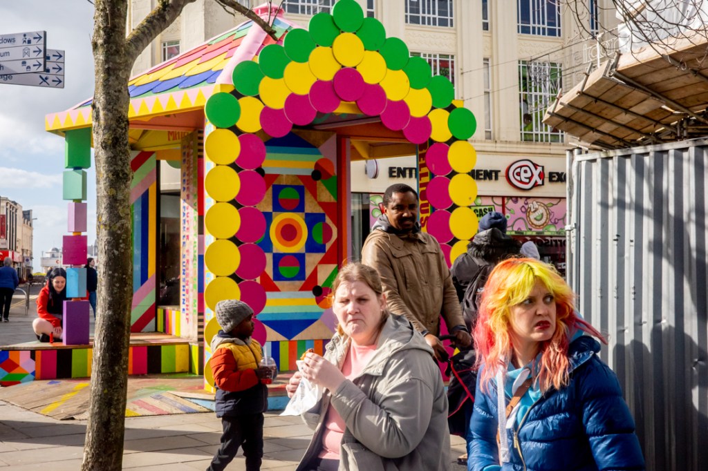 It was announced in the Summer of 2022 that a temporary Super Wonder Shrine would be located on the High Street in Weston-Super-Mare. It was co-created and painted by internationally acclaimed public realm artist Morag Myerscough and a cross-generational group of over 100 local residents and students.