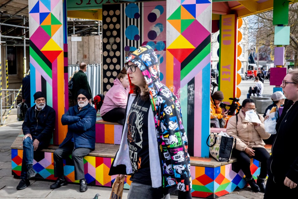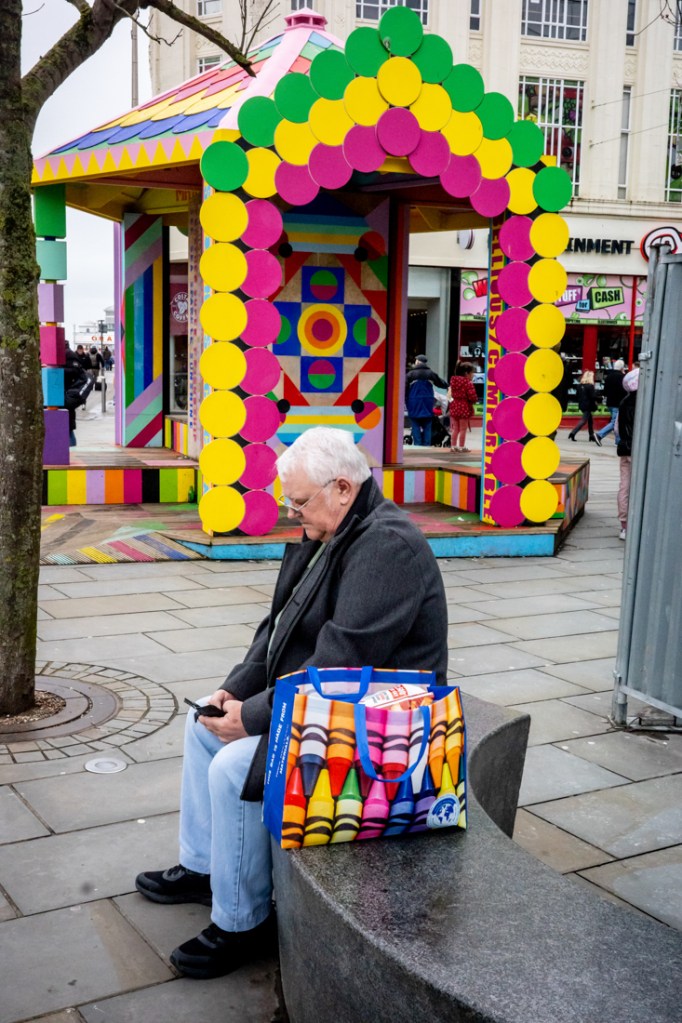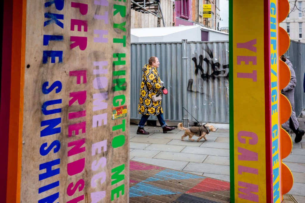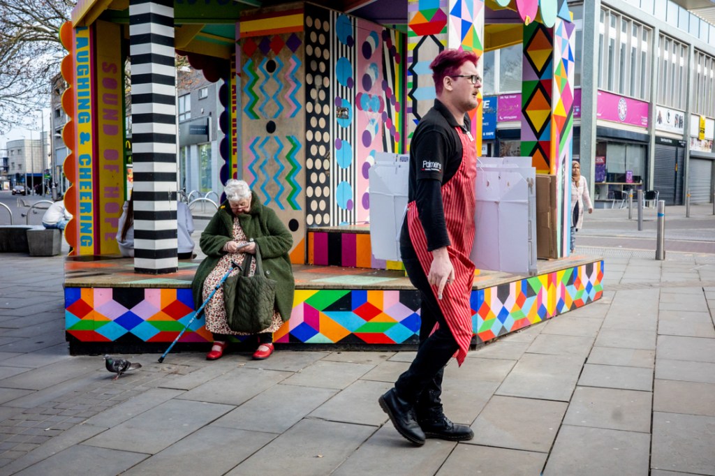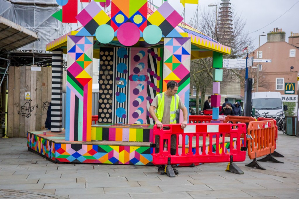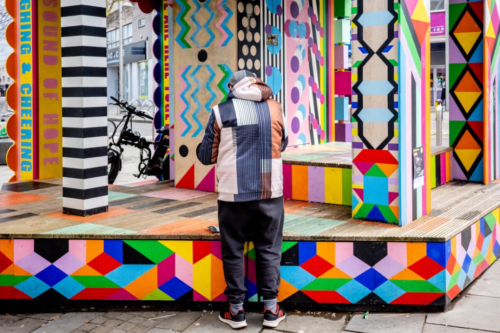 The Super Wonder Shrine was officially opened in December 2022 and for nearly two years, it has animated the pedestrianised space on the corner of High Street and Regent Street, in Weston-super-Mare, known locally as Big Lamp Corner. Erected in the artist’s trademark timber-built style and adorned with colourful patterns, words and sentiments that celebrate Weston.