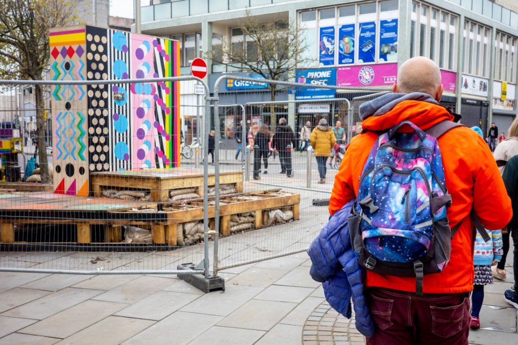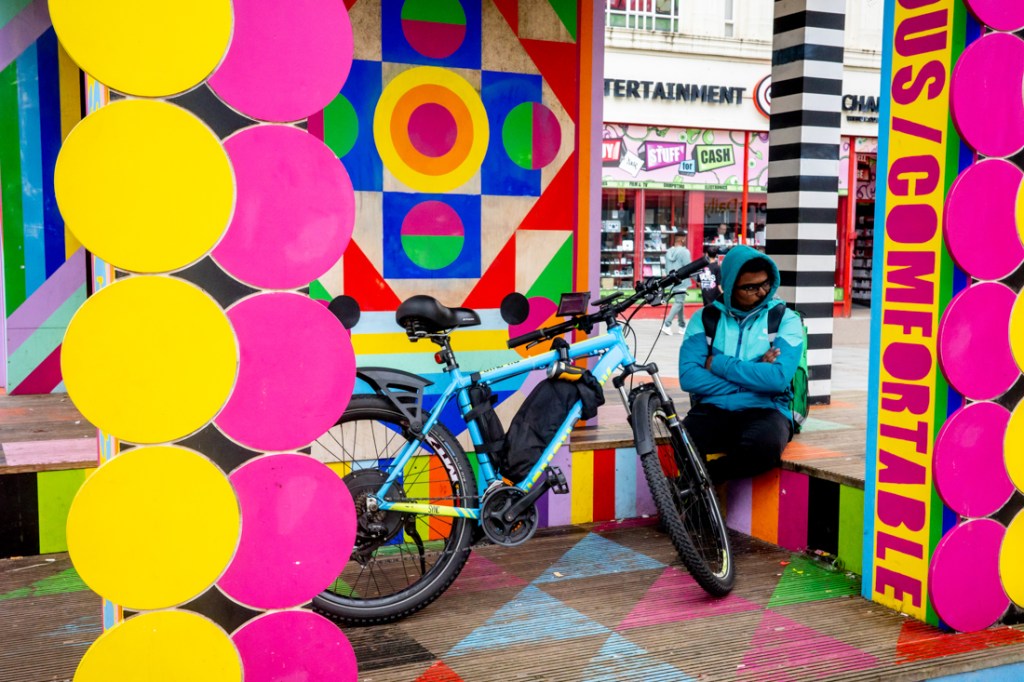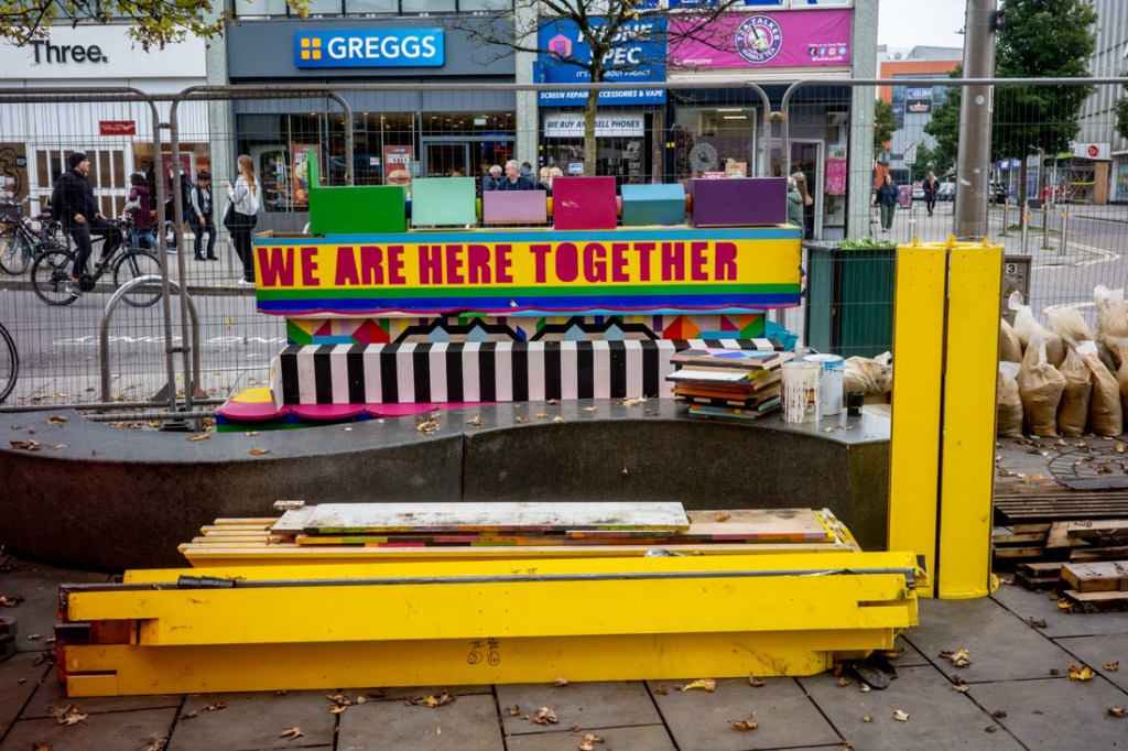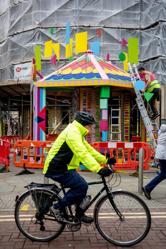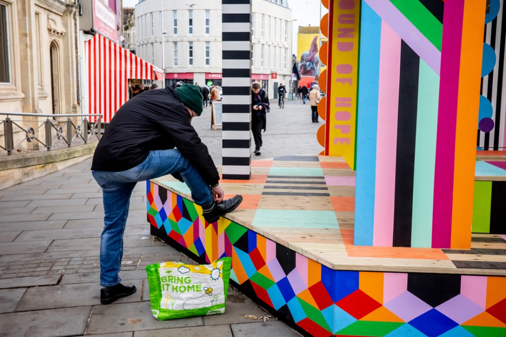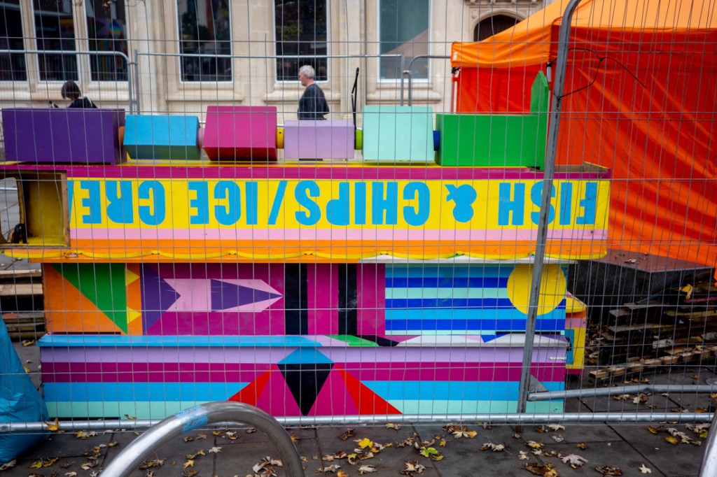 The Super Wonder Shrine was officially opened in December 2022 and for nearly two years, it has animated the pedestrianised space on the corner of High Street and Regent Street, in Weston-super-Mare, known locally as Big Lamp Corner. Erected in the artist’s trademark timber-built style and adorned with colourful patterns, words and sentiments that celebrate Weston.